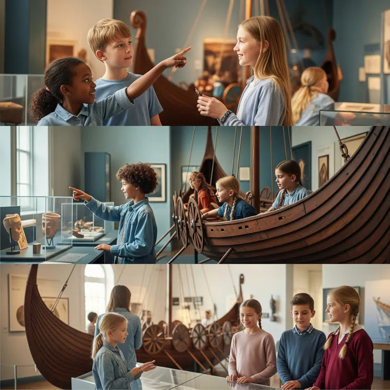 Eleverne kommer tæt på originalerne – de ægte vikingeskibe – og undersøger, hvad de kan fortælle os om liv, samfund og kulturmøder i fortiden. Undervisningen bygger på dialog og inddrager elevernes egne erfaringer, så historien forbindes til nutiden.